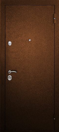 Инженерная база модели арт.КД-9 сформирована из металла толщиной 1,8 мм, дополненного внутренним утеплителем и шумоизоляцией. Внутреннее пространство двери заполнено минеральной плитой и пенополистиролом. В комплект входят два замка разного типа, глазок с широким углом обзора, ручки и противосъёмные штыри.