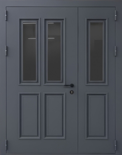 Полуторная металлофиленчатая термодверь со стеклами и порошковой покраской цвета графит КД-1399