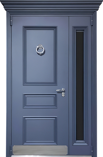 Полуторная термодверь с металлобагетом и стеклом (кнокер + отбойник) представляет собой современное решение для оформления фасада и интерьера. Благодаря продуманной конструкции дверь сохраняет свои свойства при перепадах температуры и влажности.