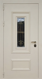 Входная термодверь с узким стеклом, ковкой, металлофиленкой и порошковым покрытием КД-1357
